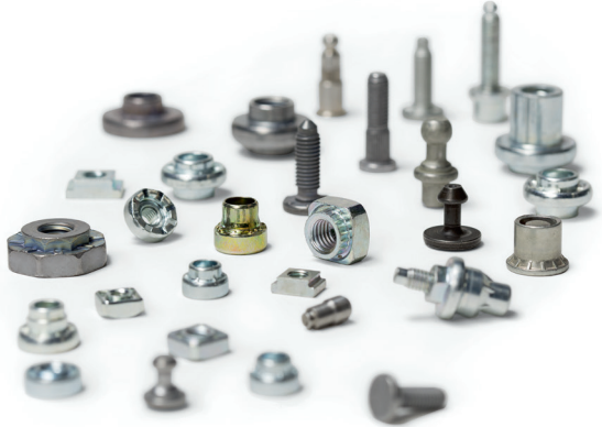 Prensamos elementos de unión como tuercas, pernos o tornillos en casi cualquier material. Esto incluye metales desde aluminio, acero, acero inoxidable, aceros de alta resistencia hasta materiales reforzados con fibra. Gracias a la tecnología de unión en frío, también puede unir sin problemas materiales termosensibles. La estructura del material permanece inalterada en todo momento. Sólo deben respetarse parámetros como el espesor mínimo dependiente del material.